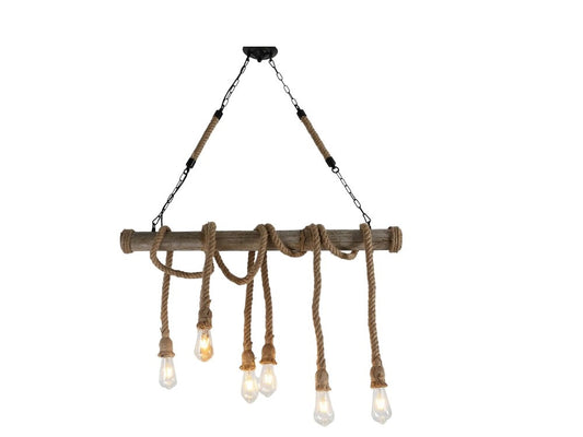 LAMPADARIO VINTAGE IN CORDA DI BAMBU' CON 6 ATTACCHI SOSPESO