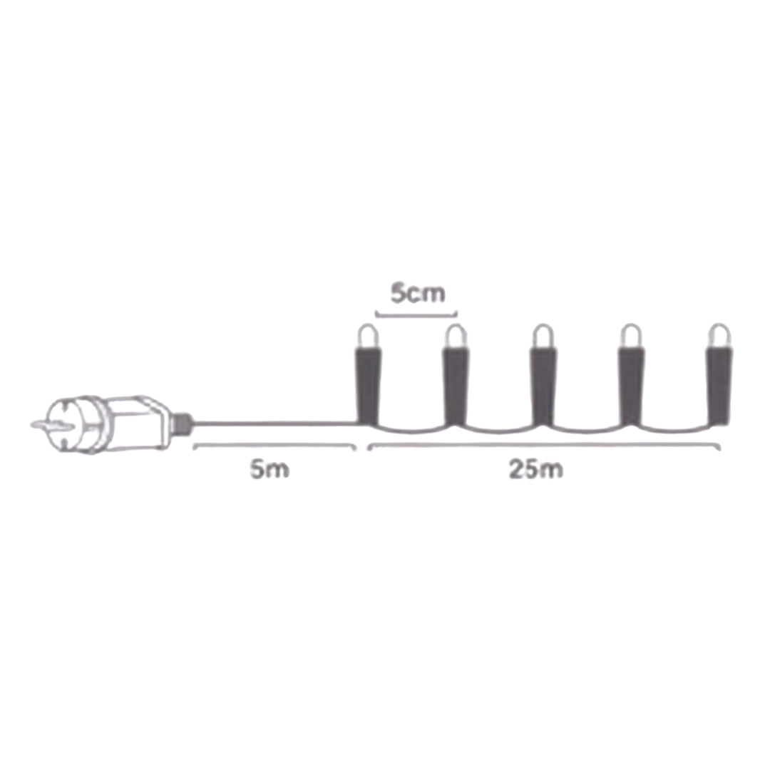 • Lunghezza parte illuminata: 25 m + 5 m di cavo